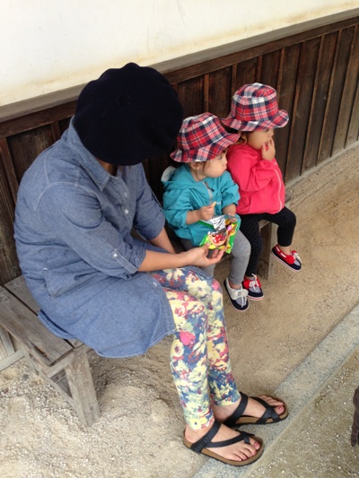 ただ、隣で遊んでるお兄ちゃんとお姉ちゃんが気になる2人(笑)