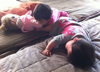 例のネルルちゃんの取り合いに・・・勝者長女ちゃん(写真上)!!