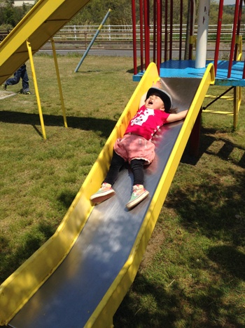 長女ちゃんは、大きな滑り台も全然平気で ↓