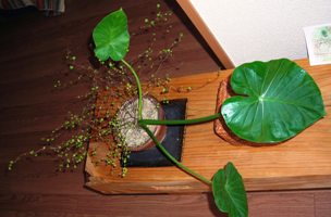 はじめは、クワズイモの葉が